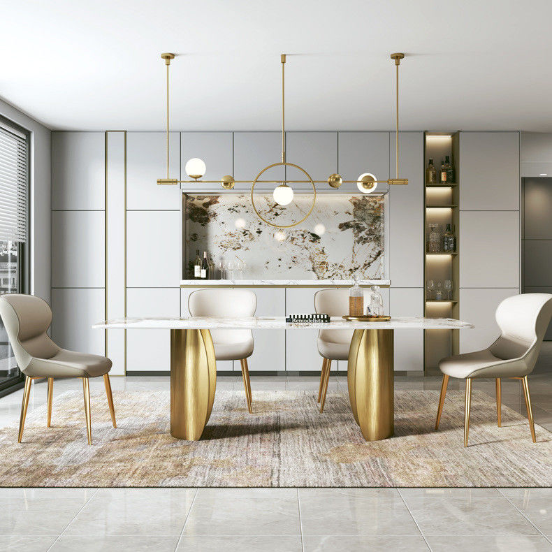 スクウェアダイニングルームテーブルは,正式なダイニングルーム,ホール,キッチン,レストラン,ホテル,アパート,レジャー施設,バー,ビラに完璧な中心部を提供します.この見事なテーブルセットには 4cm 厚いの大理石のトップがありますステンレス スチール の 棚 と 1.8 メートル の 長さ の 四角形 の 形 を 持っ て いる.この 棚 は,あなたの 部屋 に 優雅 で 洗練 さ れ た 見方 を 与え,お客さま に 印象 を 与え ます.公式 な 夕食 パーティー や 休憩 パーティー を 開催 する ときこの正式なホールダイニングテーブルセットは ゲストが集まるための完璧な場所ですこのホールダイニングルームのテーブルは,何時でも完璧な選択です..